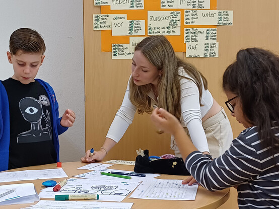 Lehramtsstudierende der Pädagogischen Hochschule Karlsruhe unterstützen Kinder der Klassen 1 bis 5 dabei, ihre sprachlichen Fähigkeiten zu verbessern, und sammeln so als zukünftige Lehrer:innen wertvolle Praxiserfahrungen.