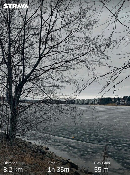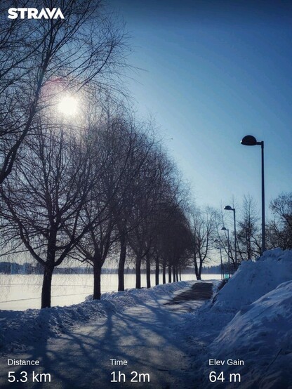 Pitkästä aikaa lenkillä. Olipa raskasta kun talven tauko. Siitä se lähtee lyllertämällä liikkeelle! Hieman sais sohjoa hävitä #lenkkeily