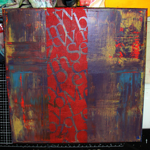 🎨 Finished (I think) last night. A little experiment, playing with just three colours - red, blue and yellow - and unconventional painting tools - scraper, sponge and stencil. 30x30cm