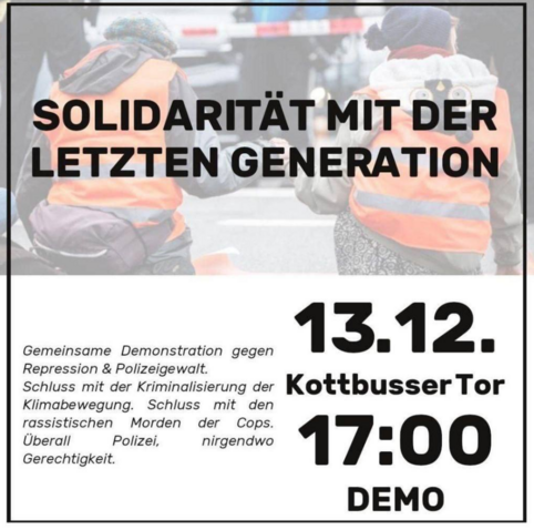 Herraus zur Solidarität und gegen Repression. Ob Klima, Antifa oder Gerechtigkeitsaktivist*innen, gemeint sind wir alle.