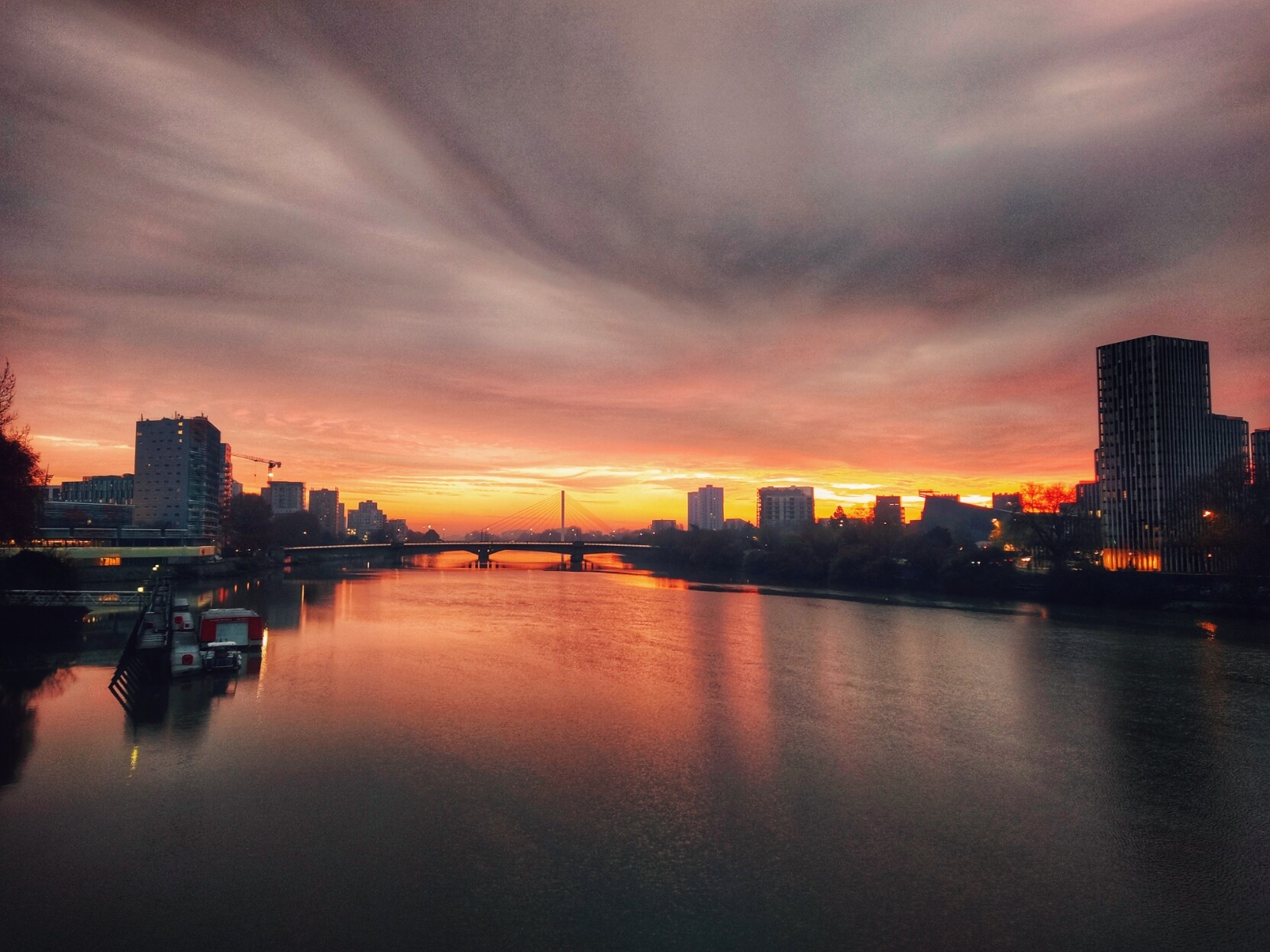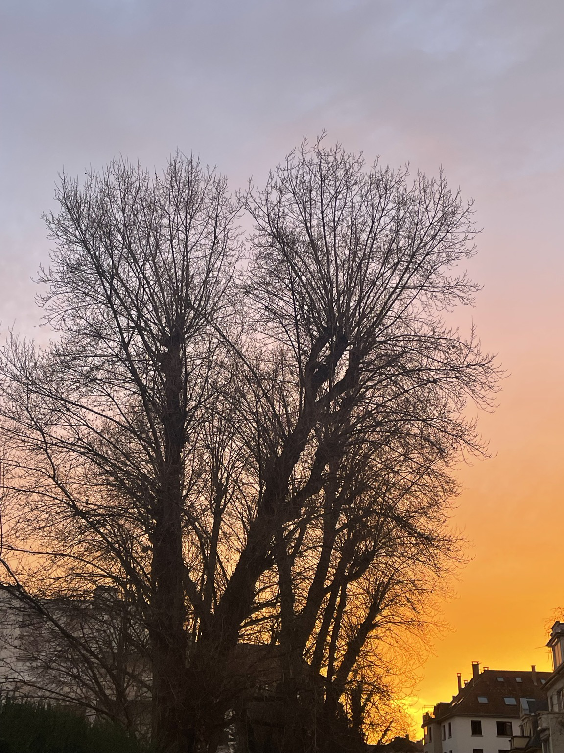 Quel magnifique lever de soleil ce matin ! ☀️ Les rayons dorés inondent la ville et promettent une journée formidable. Profitez-en bien, mes amis ! 😊🌳 #leverdesoleil #bonnejournée