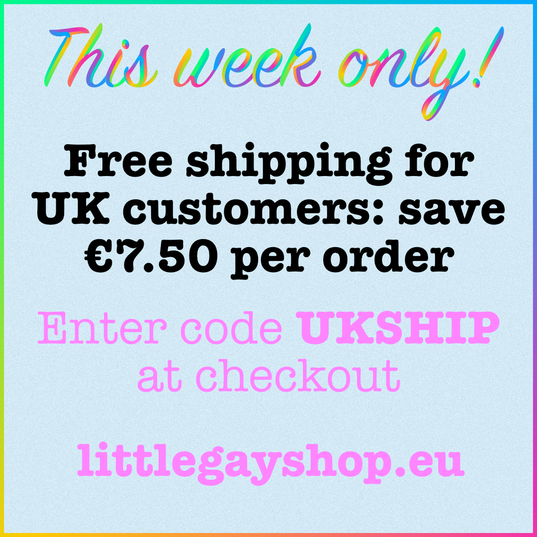 Use the code UKSHIP when you checkout at https://littlegayshop.eu
