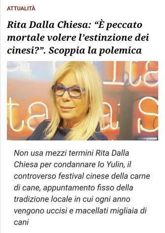 Rita Dalla Chiesa asking whether it is a mortal sin to wish for the extinction of the Chinese people, 2020.