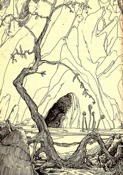Aquí está: la entrada a los subterráneos de Zagor, primera ilustración (de Russ Nicholson, 1982) para un gran #librojuego que perdura a través del tiempo.