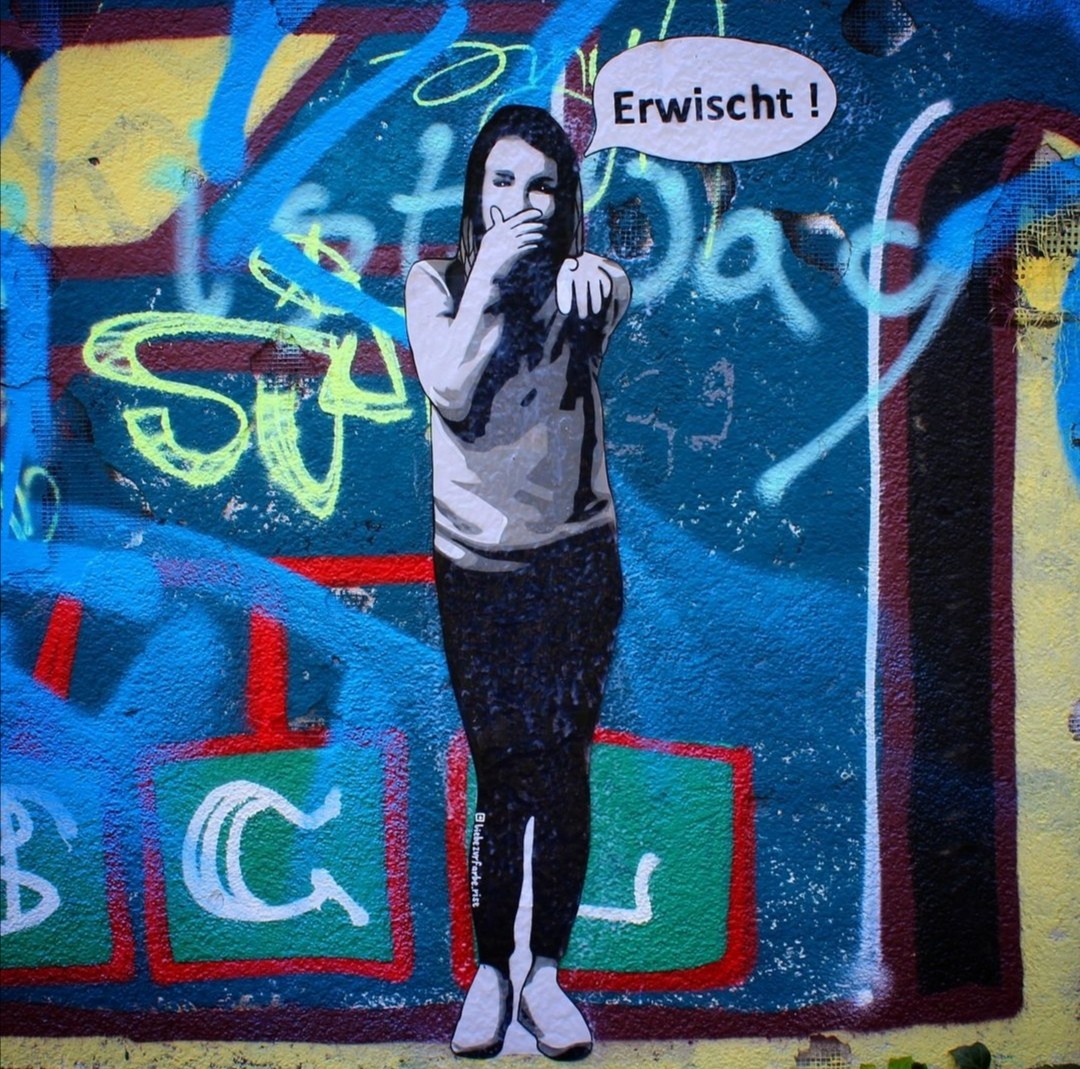 ☝️Artist: #liebezurfarbe_rise in - City: #Berlin (PrenzlBerg) Germany 🇩🇪 - Title: "Erwischt" - #streetart #mastoart #art #pasteup