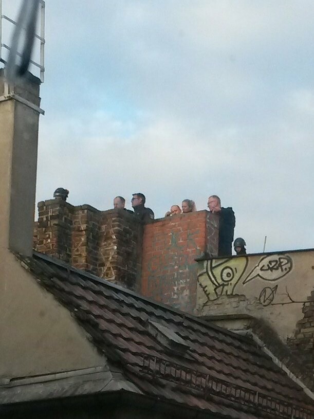Die Bullen fangen an das Dach mit Stacheldraht zu "verkleiden". Unglaublich... #Liebig34bleibt #Liebig34verteidigen #liebig34stays