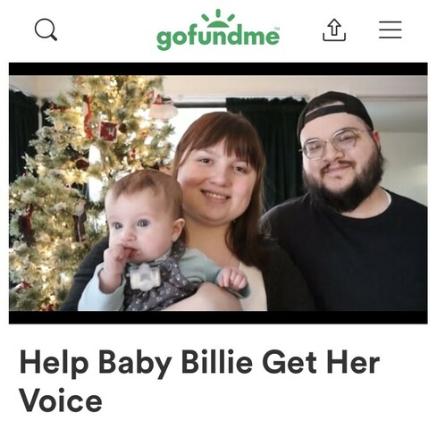 Hey all, my friend’s daughter Billie was born with an extremely rare condition that caused her airway to fuse, so she cannot breathe or speak on her own. She is a fighter though, and her parents need some extra $$ for Billie’s care this holiday season!