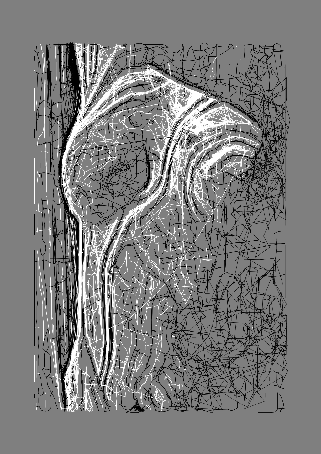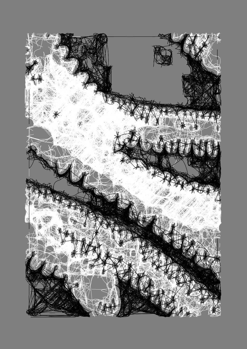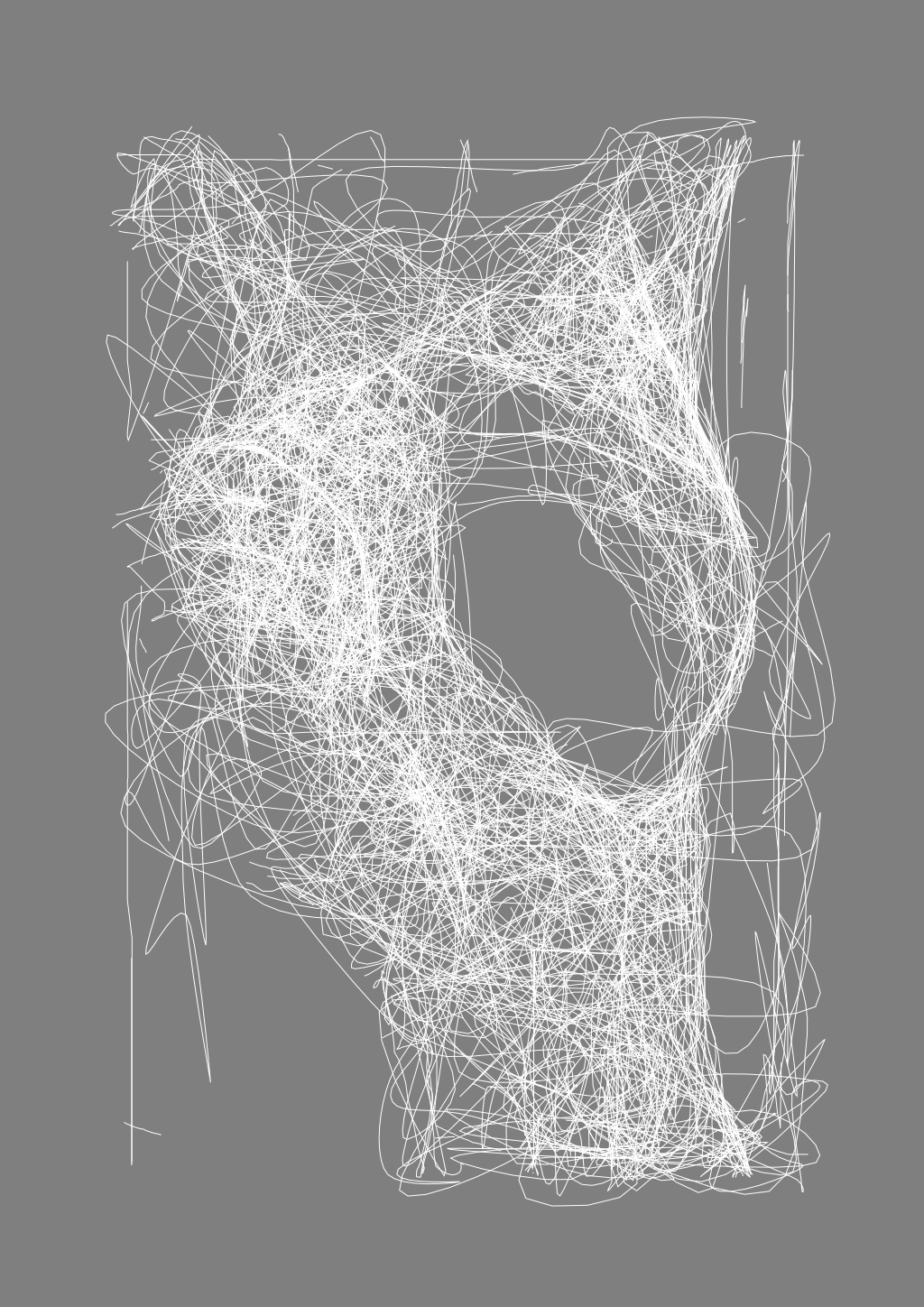 The piece was produced with a original line drawing algorithm seeded from an original photograph.