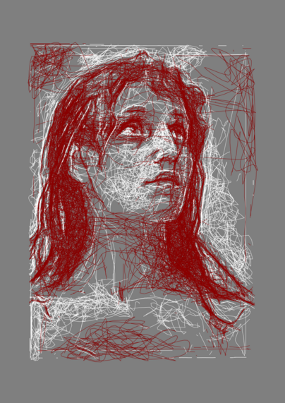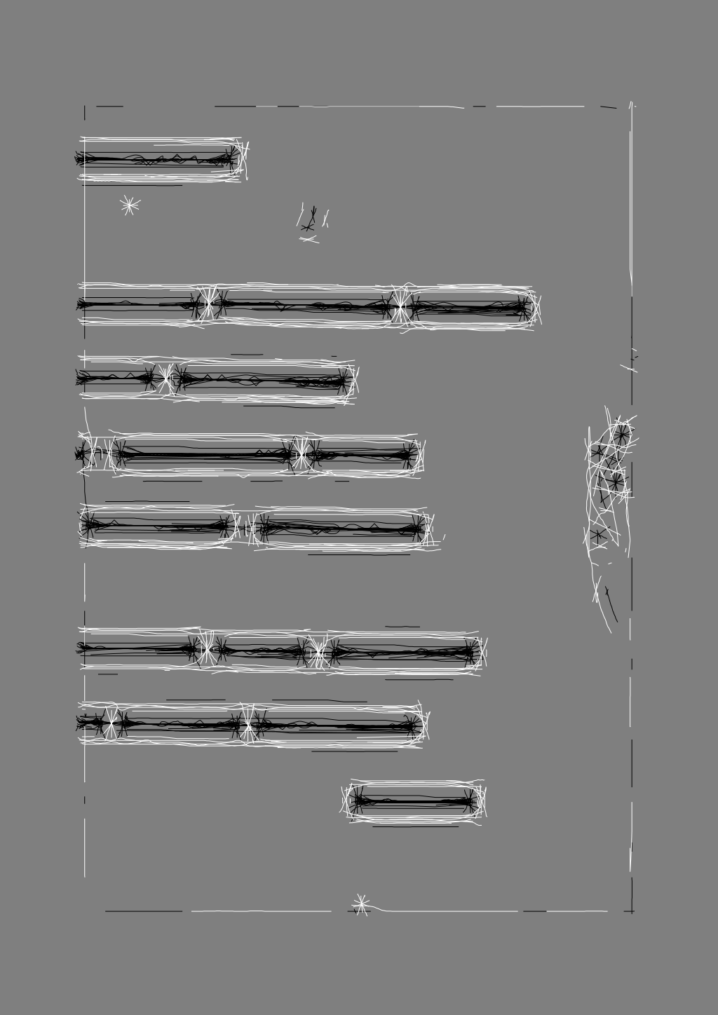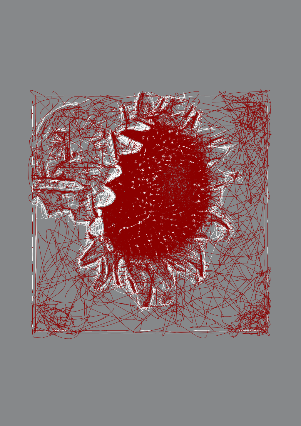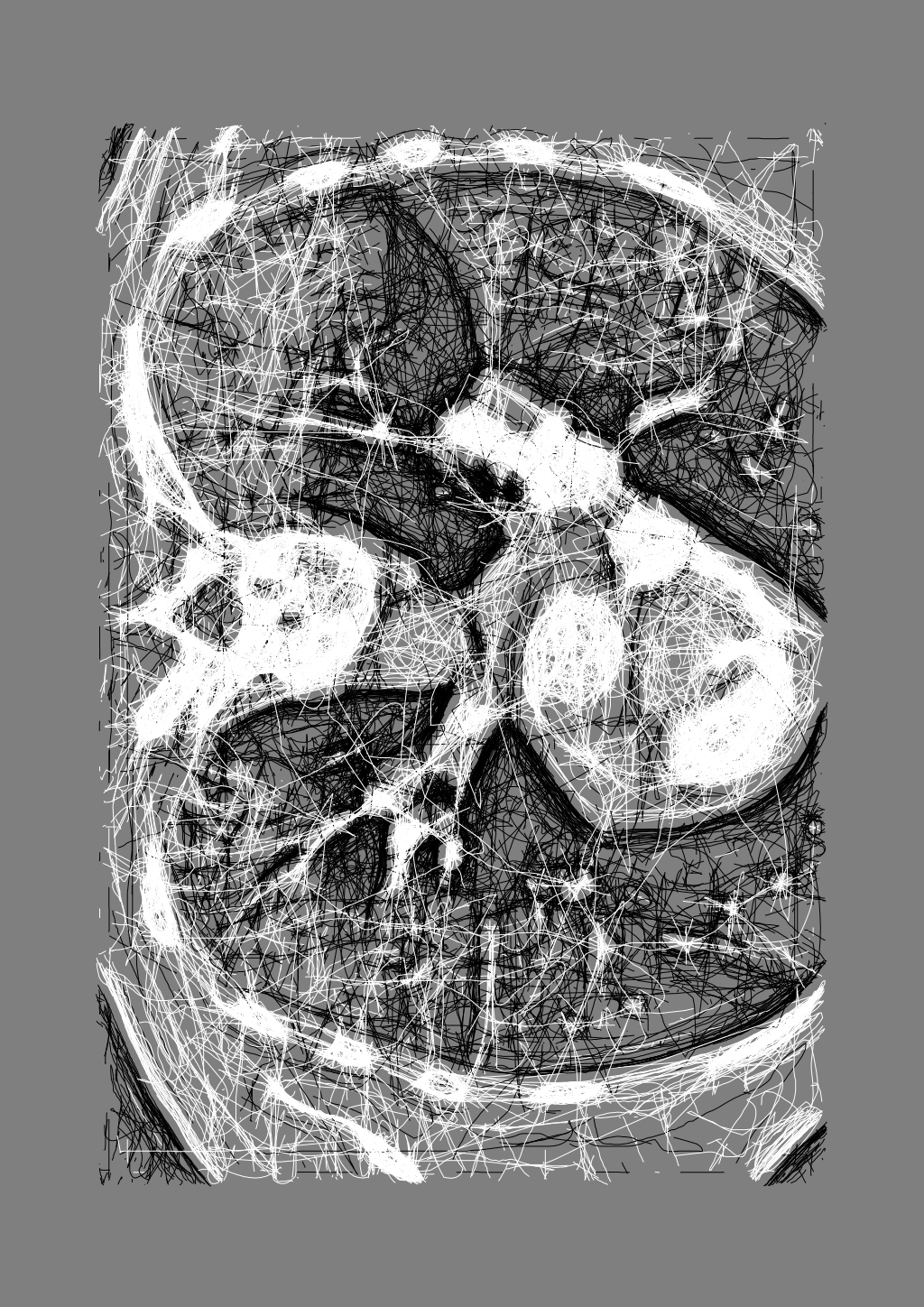 The piece was produced with a original line drawing algorithm seeded from an original photograph.