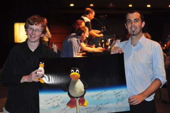 The print and the Tux toy was auctioned to raise money for rebuilding from the Brisbane floods, and was won by OzLabs.