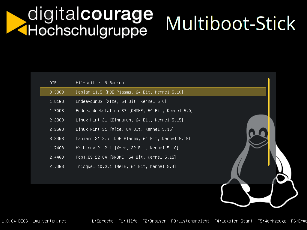 @mupan Bei der #LinuxInstallParty der @dchsg gestern habe ich einen #MultiBootStick ergattert, der mit #Ventoy gemacht worden war.