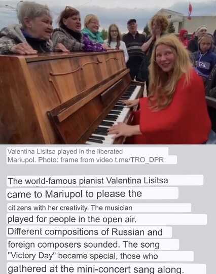 She visited occupied Mariupol and gave a concert there on 9th of May 2022.