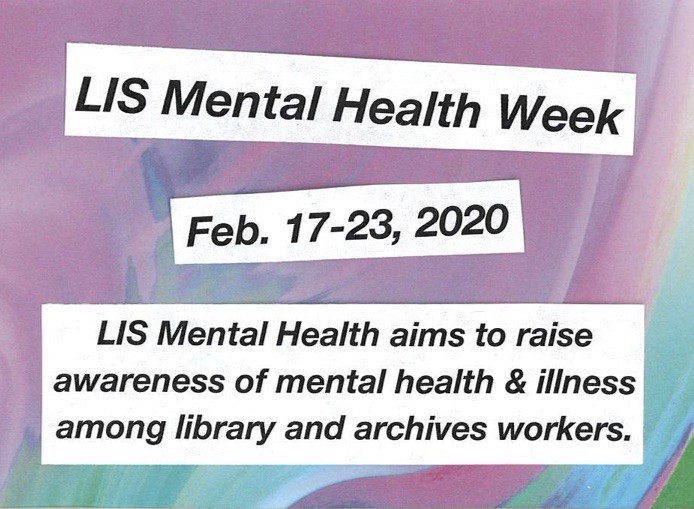 @abigailleigh@twitter.com @catladylib@twitter.com @kellymce@twitter.com @metageeky@twitter.com @gnomadlibrarian@twitter.com @referencebird@twitter.com #LISmentalhealth Week starts Monday (February 17-23)! We welcome your blog posts, questions, comments, reflections, etc. using the hashtag. We'll be Twitter chatting Tuesday evening. Find more info & additional ways to participate at: https://tinyurl.com/lismentalhealth20.