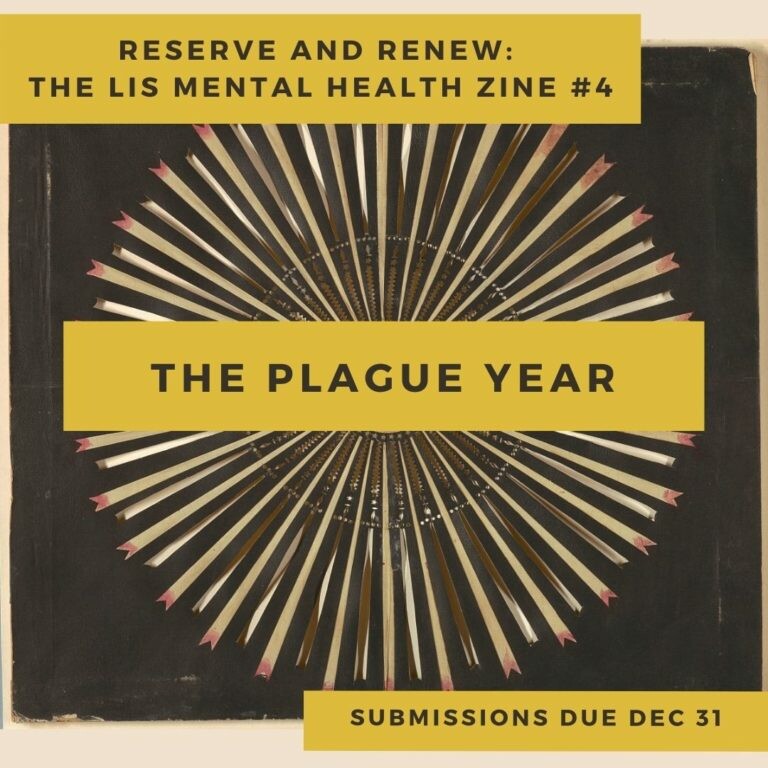 We're now accepting submissions for "Reserve and Renew," the #LISMentalHealth zine. This year we're focusing on the impacts of COVID-19 on library & archives workers. Need ideas about what to submit? Check out the list: http://lismentalhealth.org/reserve-and-renew-zine/ We'd love to hear from you!