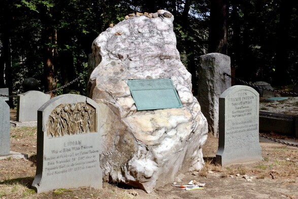 Rose quartz rock marking the grave of Ralph Waldo Emerson, Father of Transcendentalism #TombTuesday #LiteraryHistory