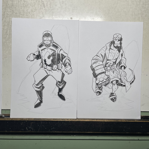 playing around with adding some simple background elements to these sketches between “real work” so i can call’m done #hellboy #lobsterjohnson