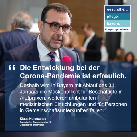 Holetschek: Bayern hebt landeseigene Maskenpflichten mit Ablauf des 31. Januar auf – Bayerns Gesundheitsminister: Bund sollte bundesrechtliche Maskenpflicht vor dem 7. April enden lassen.