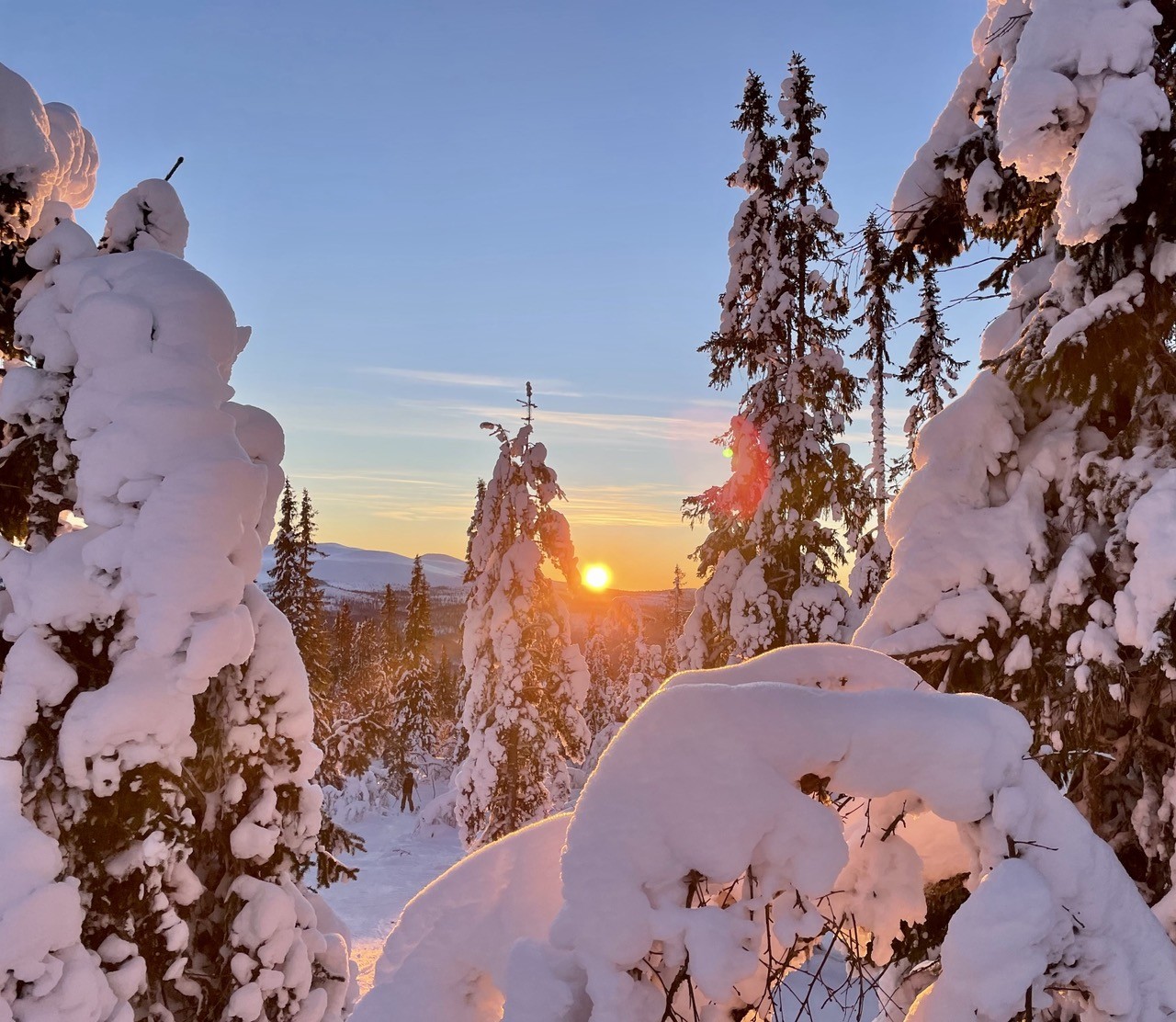 Sunny 2023 so far… good omen?☀️ Happy New Year, folks! ✌️ #lofsdalen #sweden #skiing #sunrise