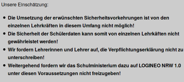 An alle 170.000 NRW-Lehrer.innen: LOGINEO-Erklärung nicht unterschreiben!
