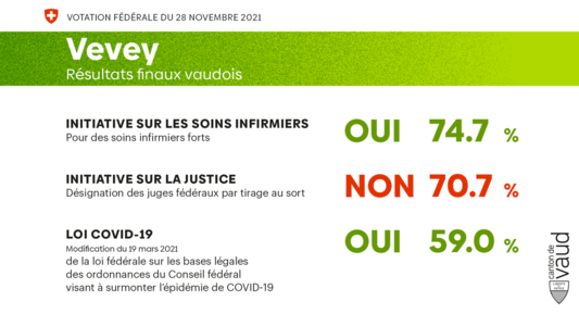 ✔️OUI 59.0% Modification du 19 mars 2021 sur la loi COVID-19 #LoiCovid #Vaud #CHvote @Vevey@twitter.com https://www.elections.vd.ch/votelec/app13/index.html?id=CHVO20211128#v=results&ad=2230&ac=5890&o=2