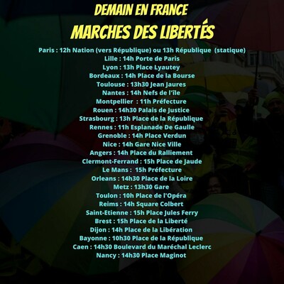 🔴[THREAD] Liste non-exhaustive des "#MarcheDesLibertés" en #France ce samedi 30 janvier contre les #LoisLiberticides (#LoiSecuriteGlobale,...).
