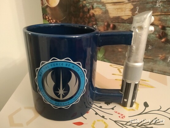Der Tag beginnt mit, wie es sich gehört, Star Wars! Die Tasse ist mega.