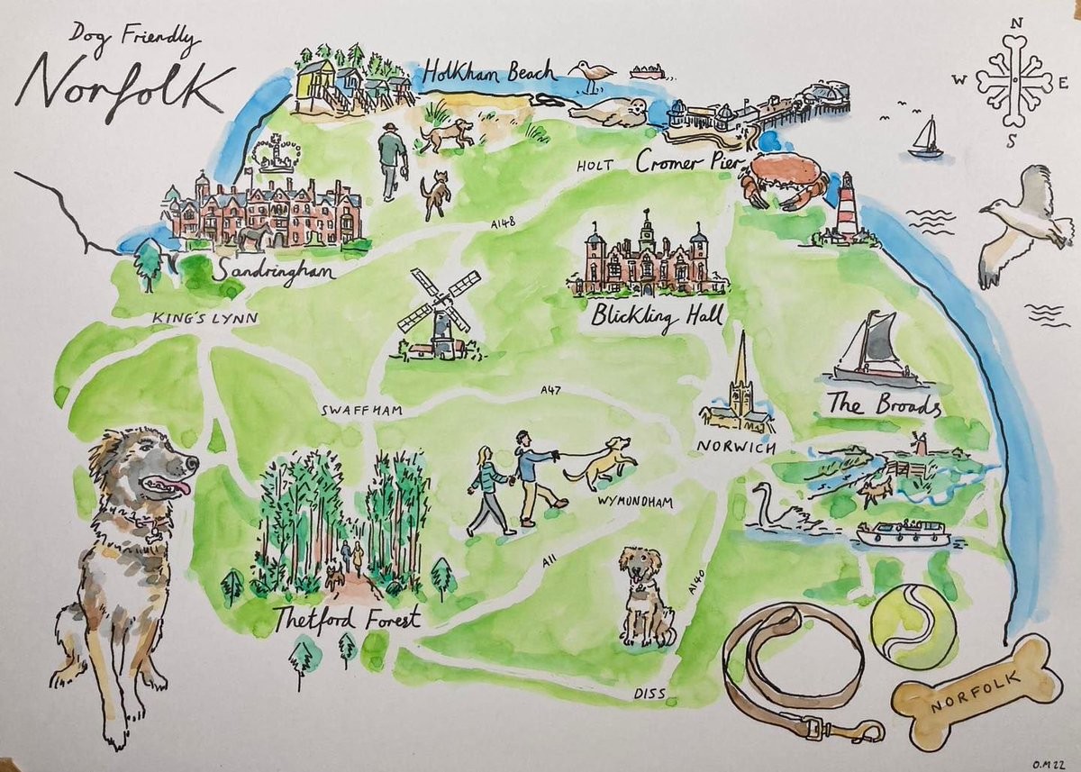 We love this map of Dog Friendly Norfolk by @norfolkdoggydeli@twitter.com #LoveNorfolk #LoveNorthNorfolk #LoveWestNorfolk