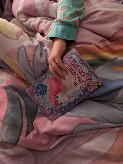 Zoe had fallen asleep with a book in her hand when I went to check on her last night! 😍 Brings back memories of waking up just for a moment, as my parents tried to remove books from my hands or face!
