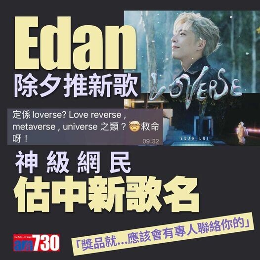 有片丨Edan呂爵安《LOVERSE》挑戰R&B 擔心唱唔到錄足7日 兒登漂白髮扮外星人尋找愛 ✨請到留言區撳Link睇片✨ 踏入2023年前夕,#呂爵安@MIRROR(Edan)推出R&B作品《#LOVERSE》,首度跟填詞人 #周耀輝 合作,歌名特別加入 #元宇宙(Metaverse)概念,變成《LOVERSE》,Edan解釋:「《LOVERSE》係想講愛對人類好緊要,愛喺全宇宙都係一個共通嘅語言,喺任何地方都會發生,係一件永恆嘅事情。」... 歌詞裏有兩句Edan印象很深:「愛就要笨到像天才 / 愛就要大到成為大愛」,他覺得這兩句的形容很巧妙:「愛未必好Logical(邏輯性),未必好有原因,甚或有時可能會好蠢,但呢個就係愛嘅精神,唔好諗太多,唔好估太多。希望呢個世界多啲愛,每個人都可以多少少愛或者大愛啲,成個世界會開心啲,大家都會舒服啲。周耀輝老師寫嘅詞同我嘅理念好接近,所以好鍾意。」 Edan首次接觸 R&B曲風,他坦言:「當初都好擔心自己處唔處理到或唱唔唱到,今次錄咗7...