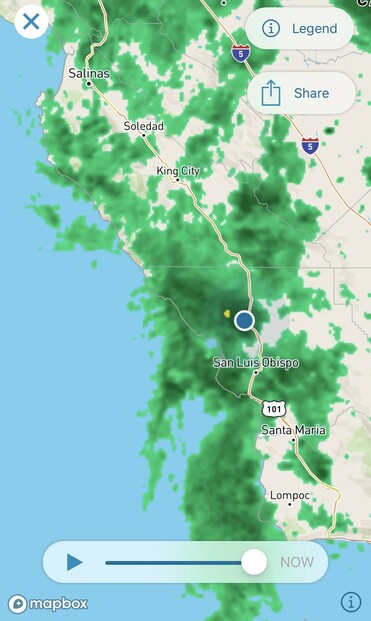 We’re enjoying a lovely rainstorm of the type Paso Robles sees only rarely. We’ve had measurable rainfall 28 hours in a row, totaling 2.08”. This is on the heels of another storm that dropped 1.38” on Friday. And it’s still coming down. Yet no hour has seen more than 0.2” out at #TablasCreek. That’s good for absorption. Our creek hasn’t started running yet. And three days in, we’re already at 83% of what we’d expect for all of December.