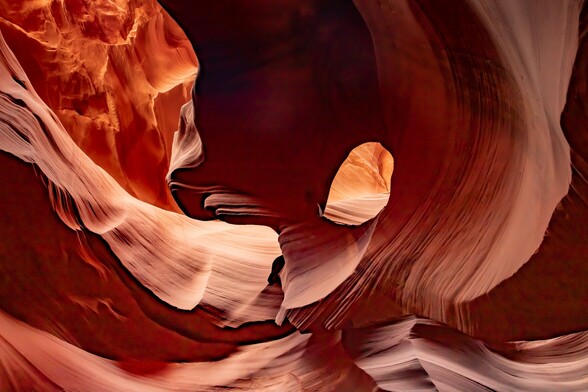 Captured in Lower Antelope Canyon just beyond The Lady Of the Wind formation. This a basically a view of the backside. I really liked this perspective with the hole in the wall and the rocks in the background seem to have this wonderful glow.