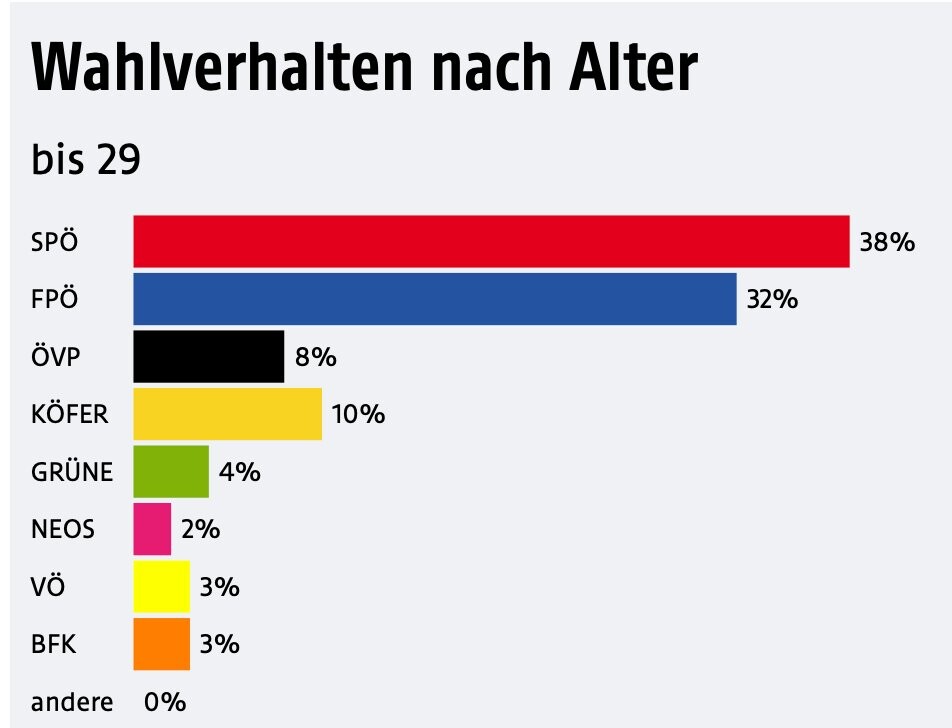 Wahlverhalten Unter-30-JĂ€hrige #ltwktn: FPĂ, VĂ und BFK zusammen 38 %; also 2 rechtsextreme Listen (beim BFK war mit Klement jemand an der Spitze, der durch seine Beziehungen ins Neonazi-Milieu auffĂ€llig wurde) und der MFG-Ableger "VĂ". Zus. mit âŠ