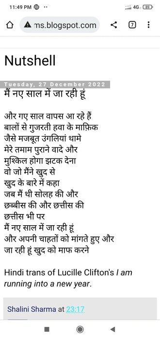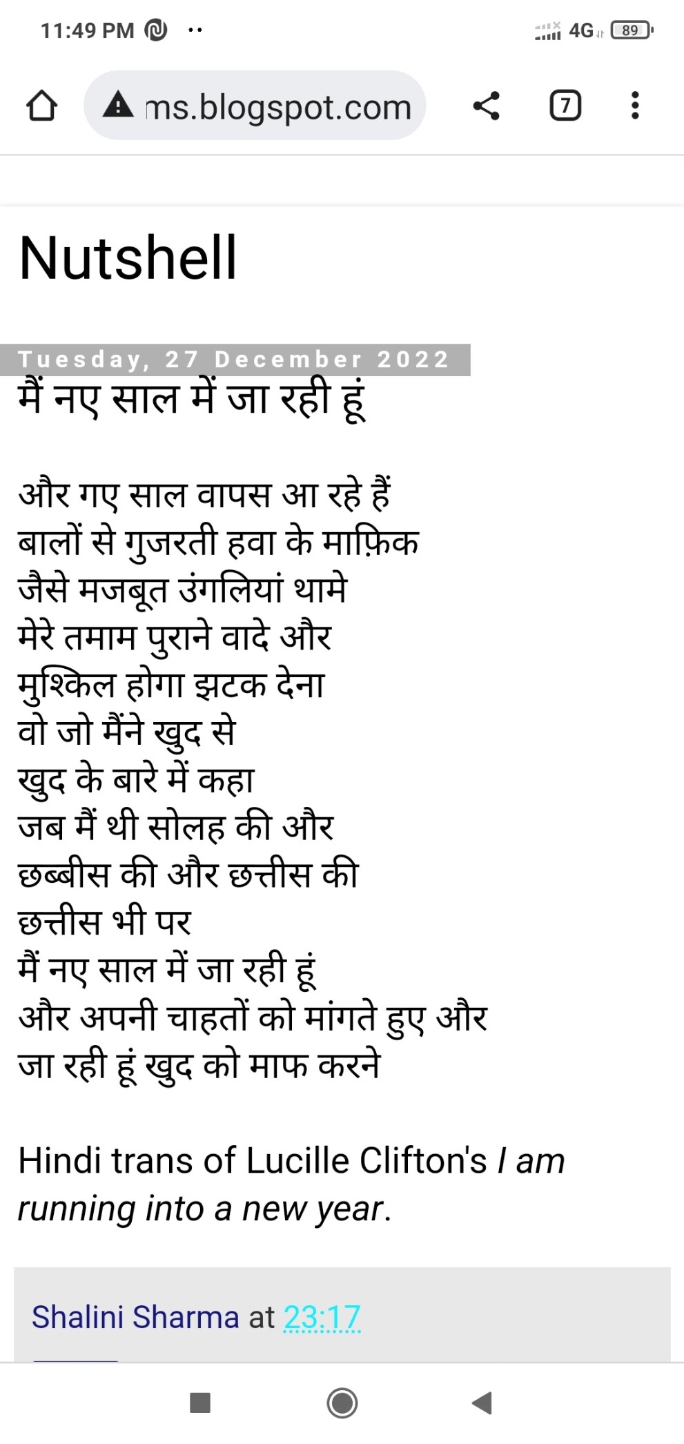 All set for 2023 with #Hindi #translation of my favourite #poem of #LucilleClifton for it reminds me to renew a hopeful regrets-free self 😍