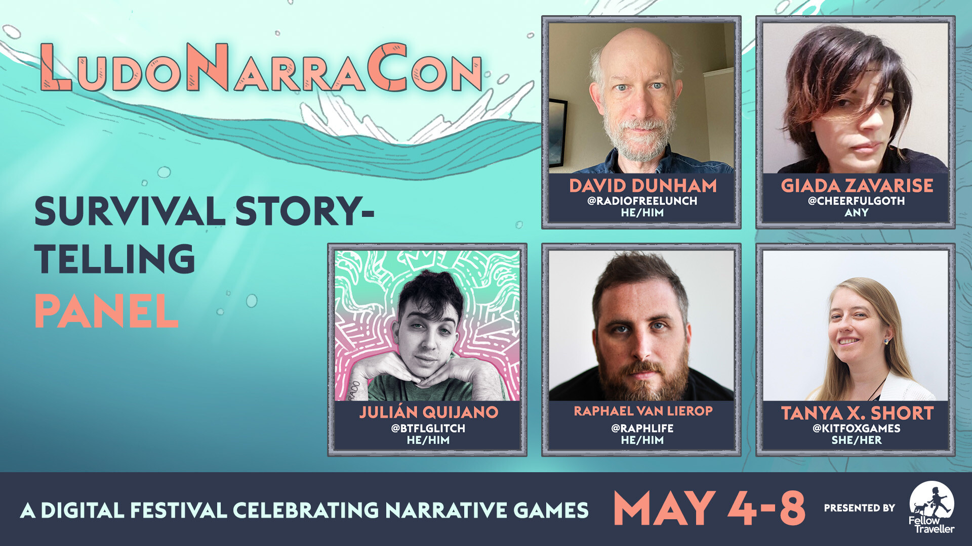 The Survival Storytelling panel Iβm part of will be live on #LudoNarraCon at 5 May 10:00 PDT https://store.steampowered.com/news/group/33025617/view/3710443172337771148?l=english