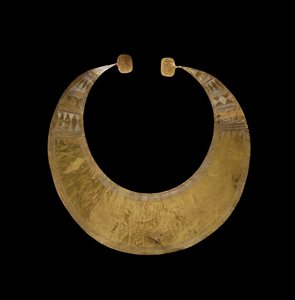 The Blessington Lunula: a stunning example of gold craft from the early Irish Bronze Age, over 4,000 years old. It's in the British Museum collection, having been (somehow) acquired by Rev William Greenwell, a CofE priest and amateur archeologist from Durham, who then sold it in 1909 to American banker JP Morgan, who donated it to the museum. But no records about where it was discovered were recorded in the Greenwell archive. #Gold #Lunula #BronzeAge #Archeology