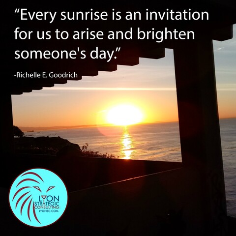 "Every sunrise is an invitation for us to arise and brighten someone's day." - Richelle E. Goodrich #SundayMotivation #QuoteOfTheDay #ContinuousImprovement #Coaching #LyonStrategic #RachelleEGoodrich