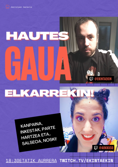 @ekintaekin ta biok horren inguruan solasten egongo gara gaur TWITCHen. Zatoz ta jarraitu lagunartean hauteskunde gaua!