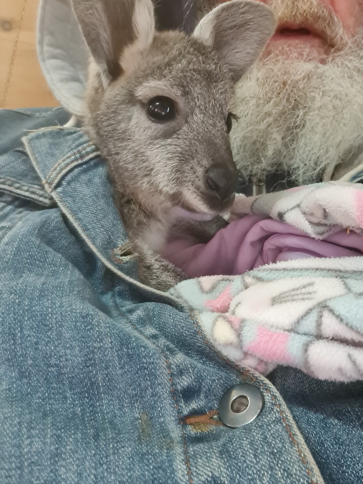Hello fellow tooters. Bit late today but hope you all have a wonderful #MacropodMonday. Pleased to see our favourite female wallaby has a little nose peeking out of her pouch getting a view of its new world. #MacropodsOfMastodon
