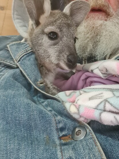 Mother is Winter and the joey is around 5 months old. It has no fur yet but that is starting and the joey is what we call a "velvet", and will be called so, until the fur starts to cover it over the next month.