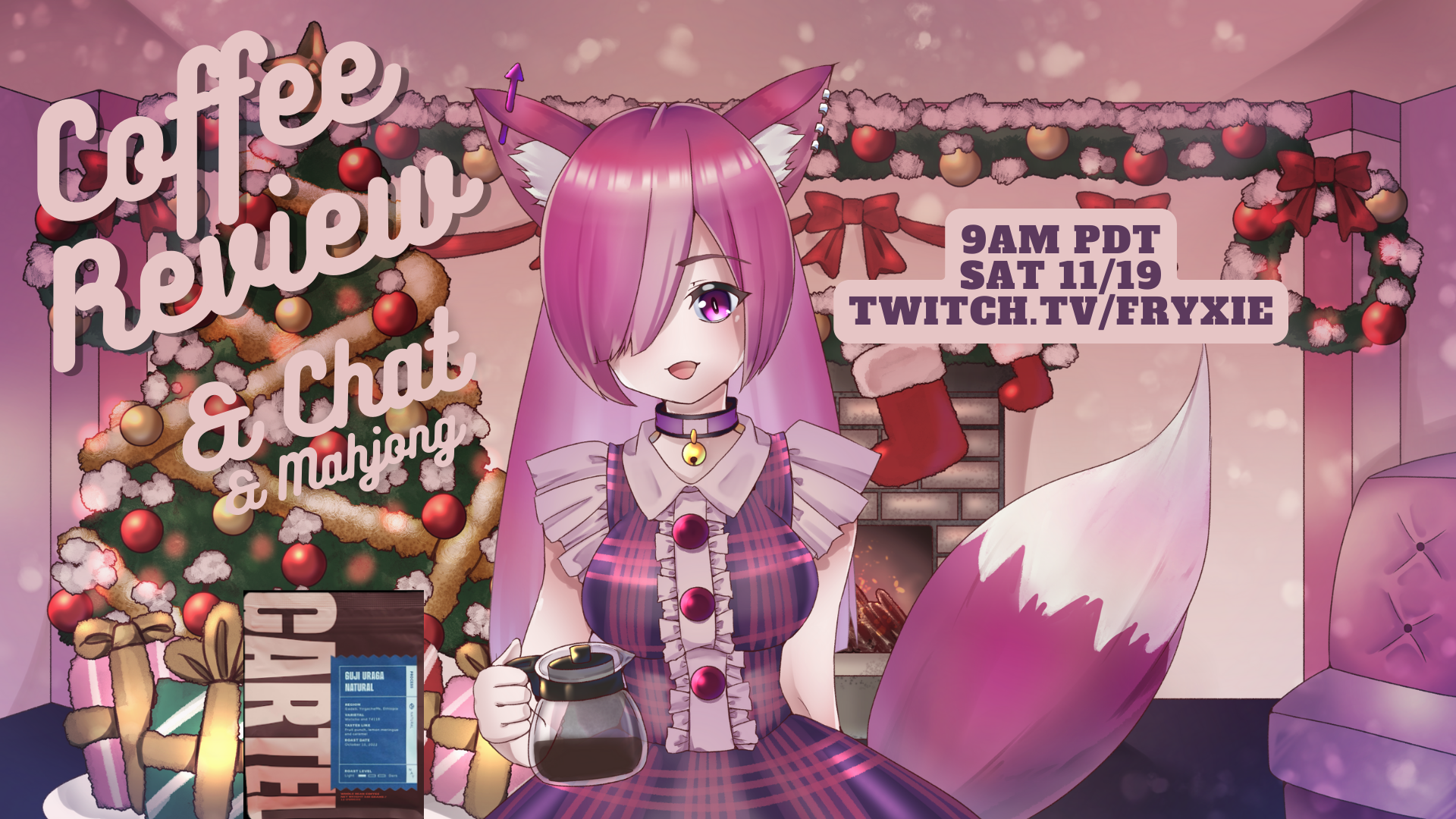 Hey everyone! 20 mins till stream, I've got a lot of fun planned including failing to get anything in the mahjong soul gacha hell machine! Stop by https://twitch.tv/fryxie and let's have some delicious coffee and some fun!