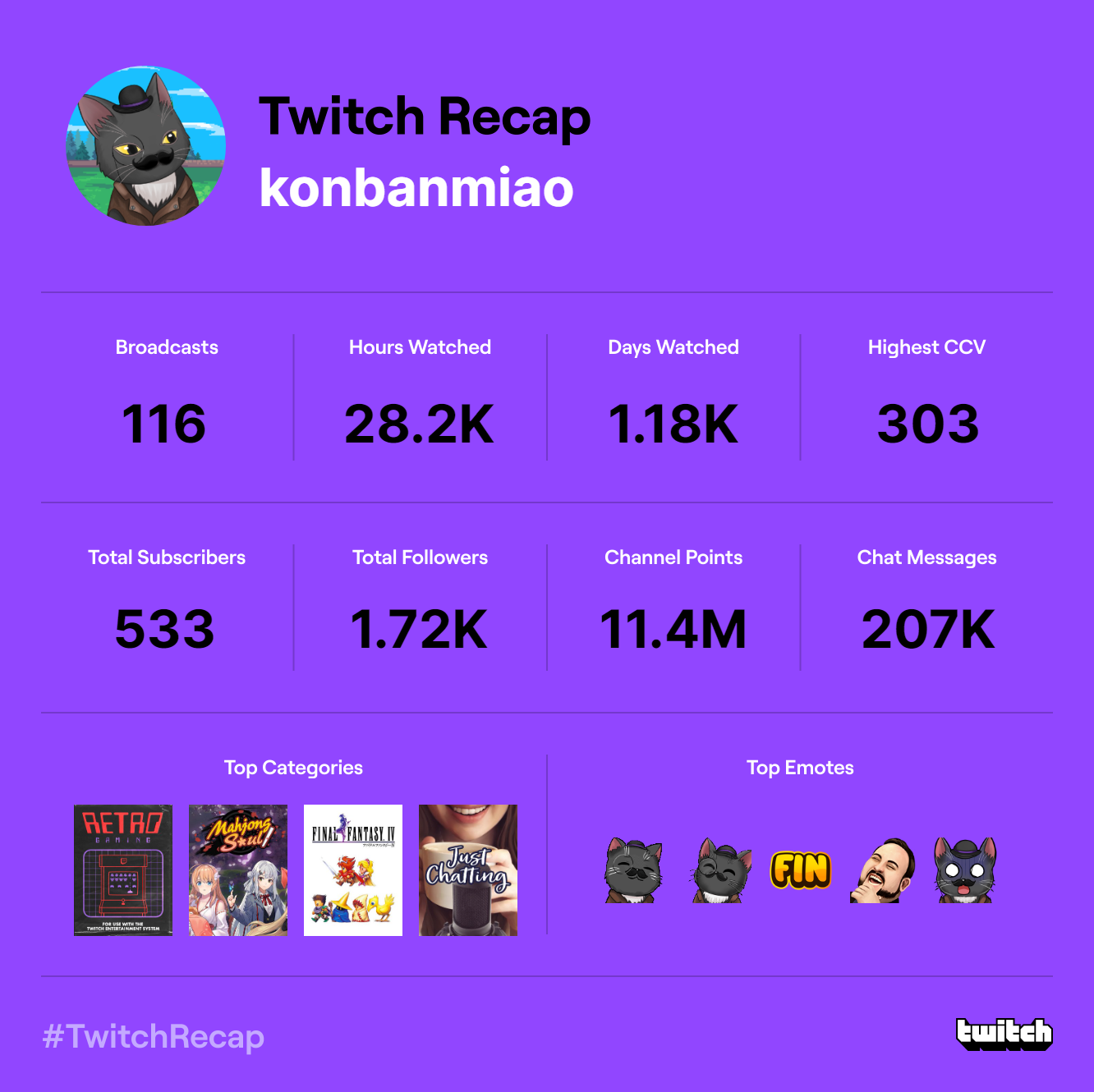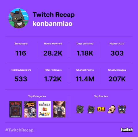 #TwitchRecap time! Thank you so much, Konba Krew, for all the love, support, and great times! We accomplished so much this year - can't wait to see what's in store for us moving in to 2023! :3