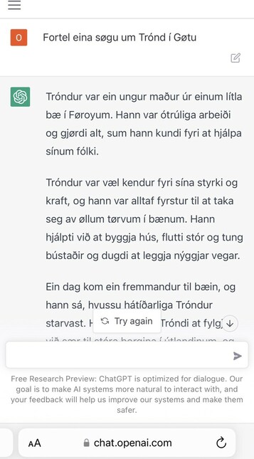 ChatGPT dugir eisini føroyskt!