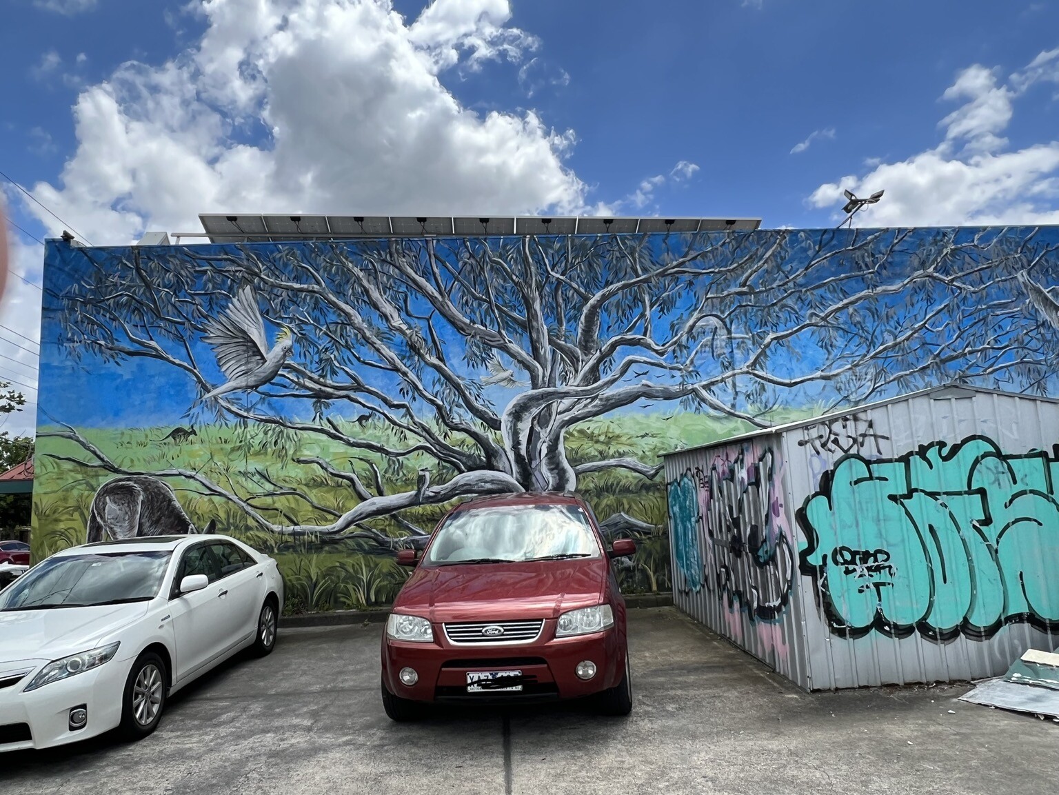 #cockies #cockatoo #gumtree #malverneast #australia #eucalypt #altext #suburbanart #streetart #mastoart #melbourne #narrm #murals #mural #muralart #publicart #art #victoria #aesthetichedonist #makesmehappy