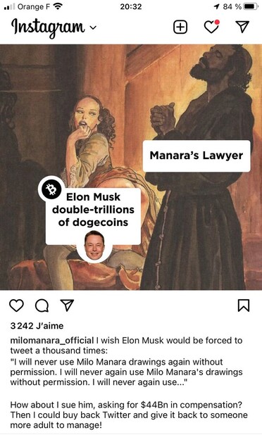 Pas sûr qu’Elon s’attendait à cette réponse de la part de Milo #Manara ! Bien fait pour sa gueule !