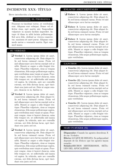 -Mejoras en la creación de Problemas. Simplifica la gestión del DJ y a la vez baja la dificultad para los PJ.