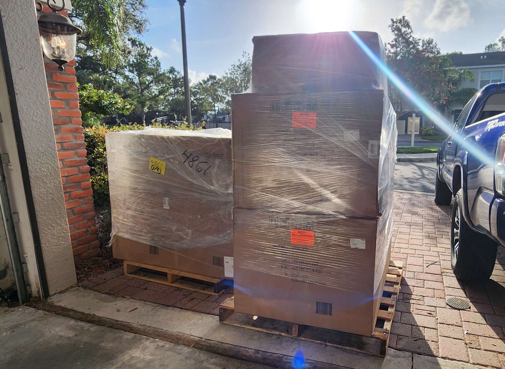 These are a couple pallets of speakers, bass, and other fun snagged by our A/V lead to make sure our concert looks & sounds as amazing as possible for our performers and fairgoers.