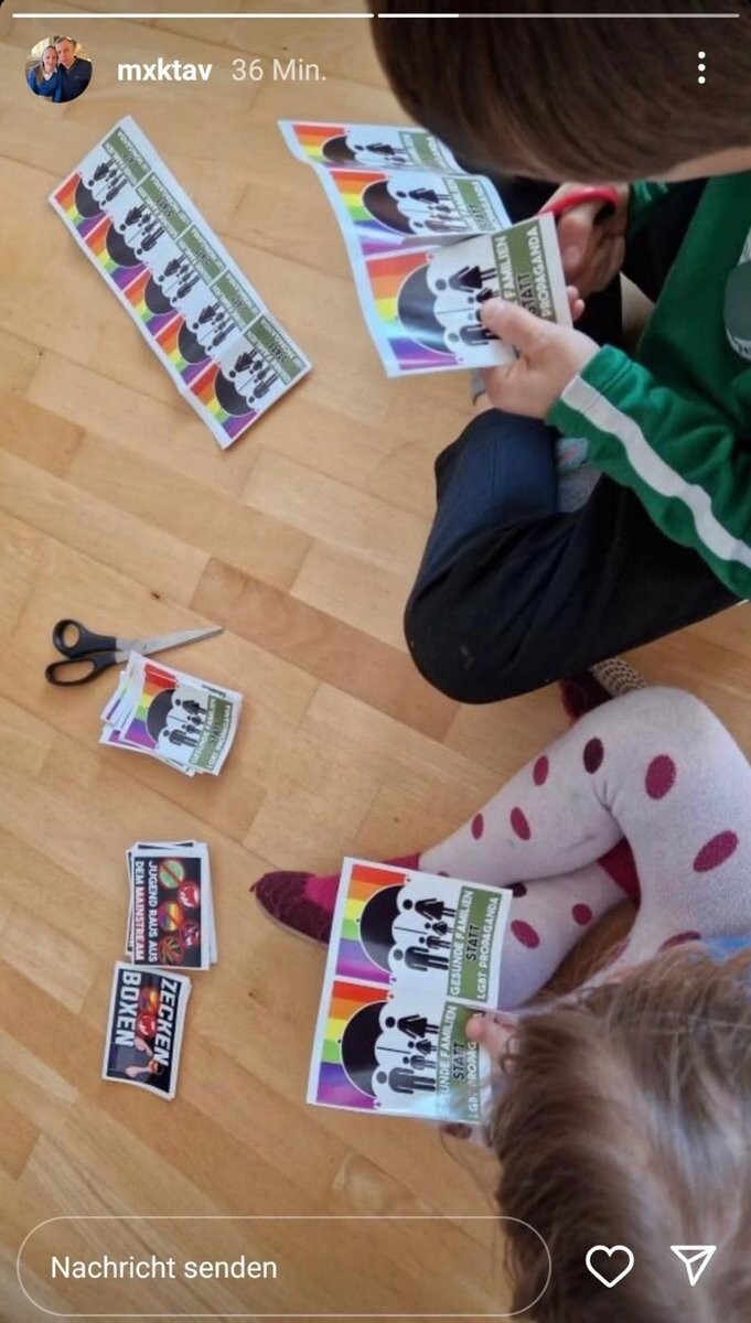Nicht nur der Malereibetrieb ist ein Familienbetrieb, auch die Aufkleber produziert #Maric im eigenen Haus und lässt die Bögen u.a. von jungen Familienangehörigen auseinanderschneiden. Die Familie unterstützt offenbar seine neonazistischen Machenschaften.