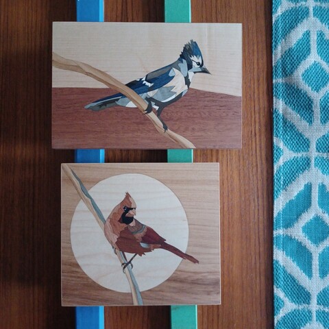 Right now, I’m learning #Woodworking (specifically #Marquetry ) from my dad, so I've been posting pictures of things I make. I also do a lot of #Knitting and #NeedleFelting.