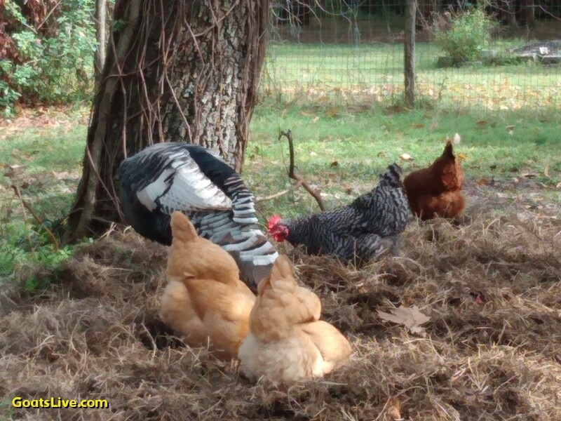 Chickens and turkeys enjoying a lovely day out in the back pasture.