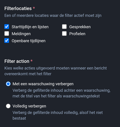 Een van de mooiste functies van Mastodon vind ik de opties die de filter functie heeft. Met het beperkt kunnen filteren van woorden kun je voorkomen dat je delen van een discussie mist als die woorden gebruikt worden, terwijl de woorden op tijdlijnen wel verborgen of gemarkeerd worden.